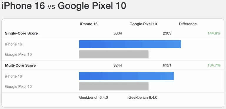 Nowadays, while rivals have taken giant leaps forward in processing speed, the Tensor has only taken small steps. The Google Tensor G5, at least on paper, simply can’t compete with the likes of the iPhone 16 and Samsung Galaxy S25, despite being in the same price range. I don’t normally pay much attention to benchmarking as numbers certainly aren’t everything, but in this case, the Geekbench 6 scores speak for themselves.