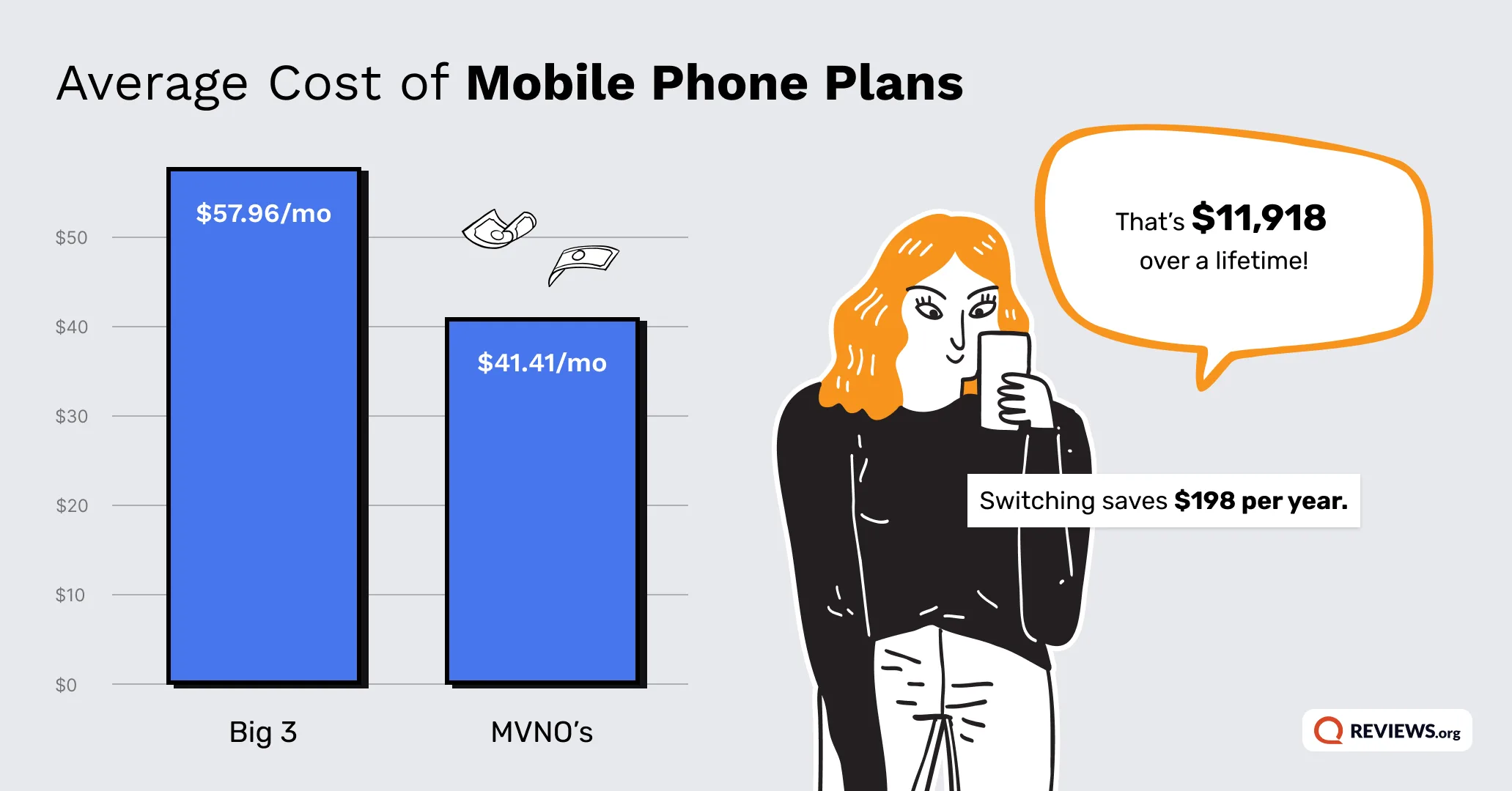 - Switching from a Big Three carrier (AT&T, T-Mobile, or Verizon) to an MVNO carrier saves the average consumer $200 a year