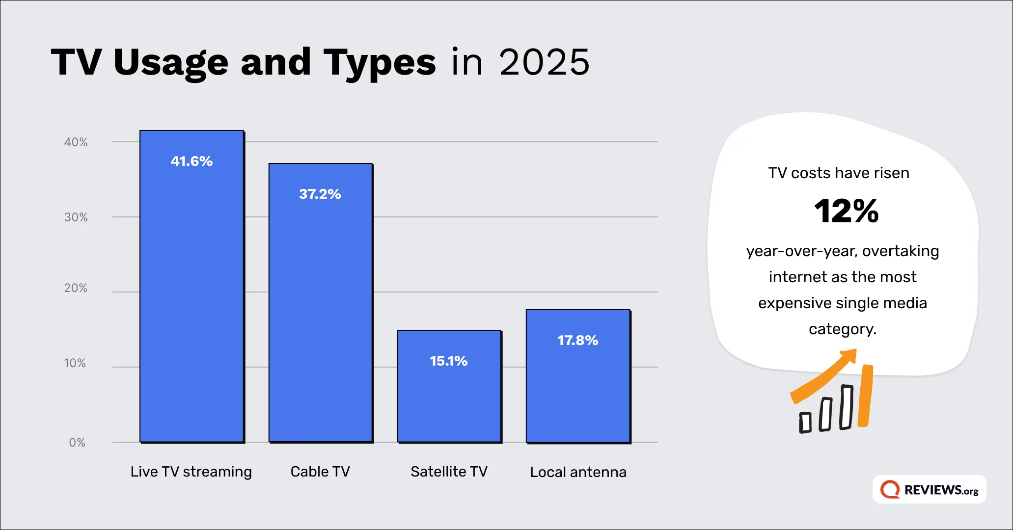 How much does it cost to stay connected? For Reviews.org’s State of Consumer Media Spending 2025 report we surveyed 1,000 Americans and analyzed the latest plans and packages to find out how much Americans spend on internet, mobile, and TV services, and how these costs have changed over time.