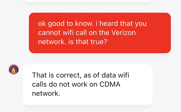 Important note about CDMA network: If you choose the CDMA network (Verizon), you do not get free Wi-Fi calls. So if you rely on Wi-Fi to make calls, reconsider signing up for the CDMA network.