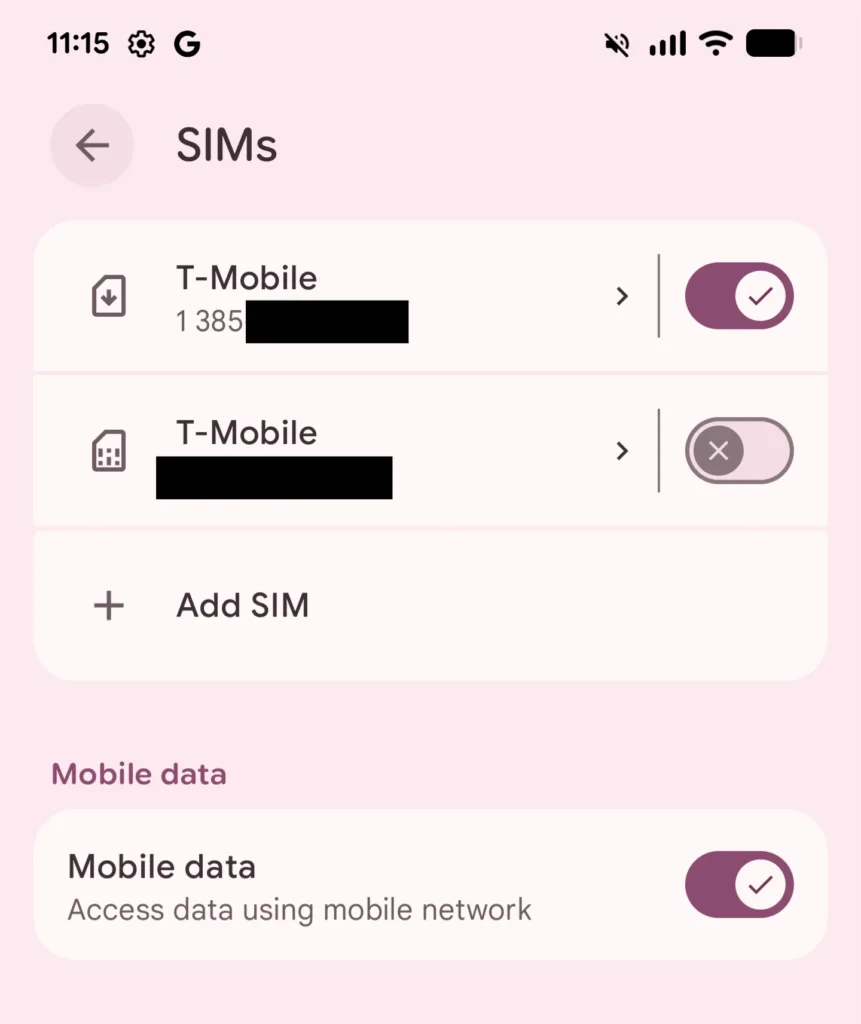 Once you toggle on your T-Mobile (or AT&T or Verizon) SIM, your Red Pocket service will be up and running!