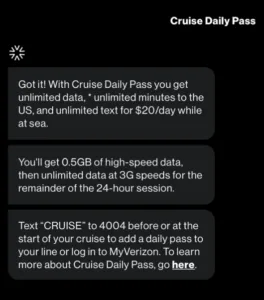AI chatbot in the My Verizon app gave me all the information I needed about my plan's international perks. Screenshot by Brenna Elieson