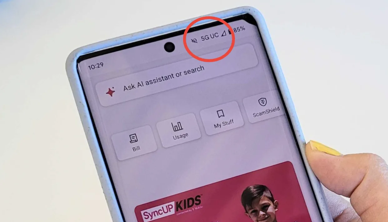 My phone indicates if I’m connected to T-Mobile’s 5G UC network in the top status bar. Photo by Kelly Huh